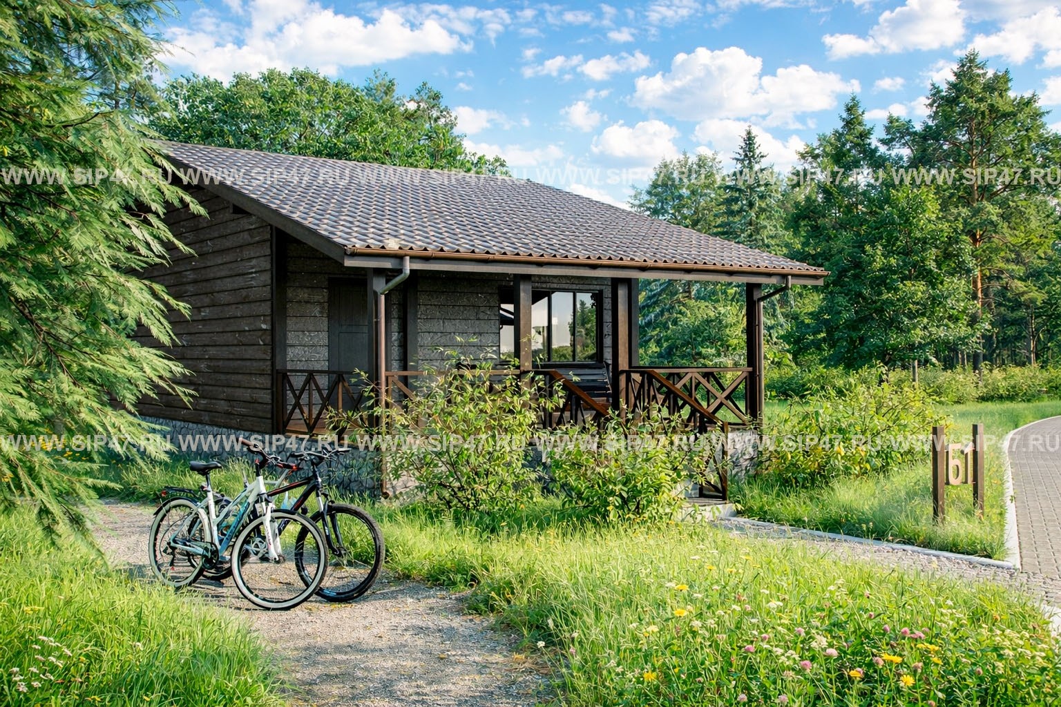 Компактный одноэтажный гостевой дом из СИП-панелей для базы отдыха.
