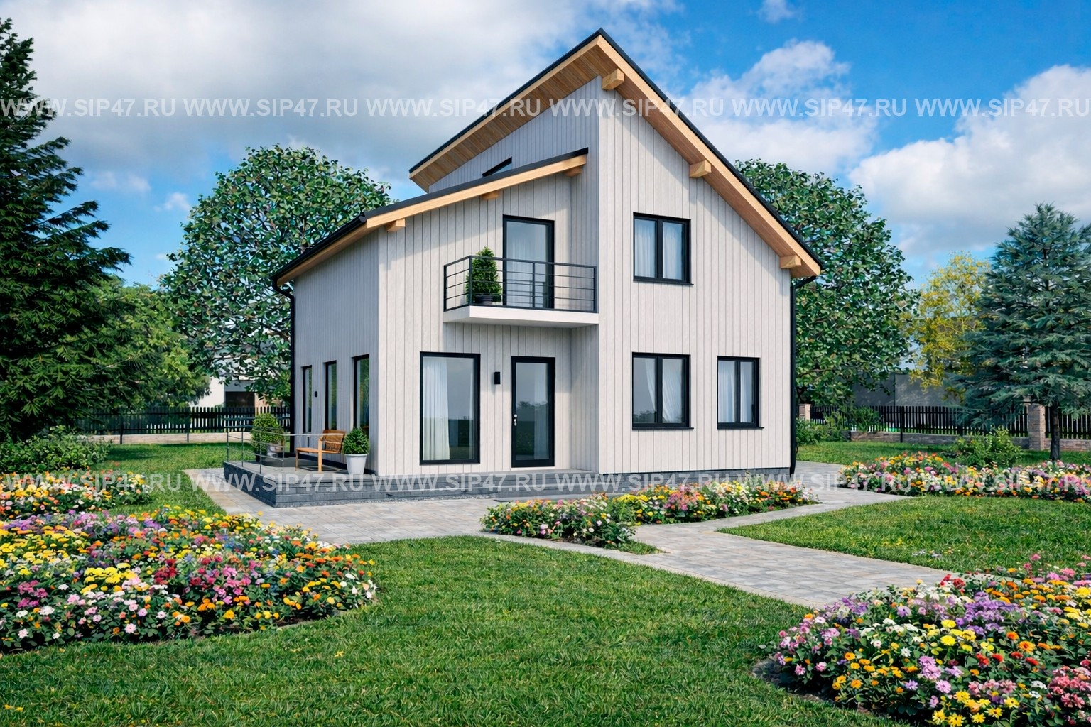 Толщина наружных и внутренних стен СИП-панелей 174 мм, толщина СИП-панелей перекрытий 174 мм.