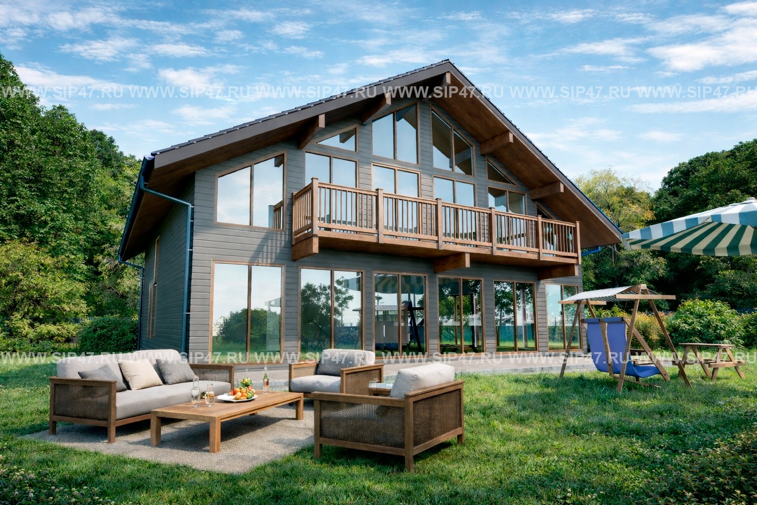 СИП- дом 277 м2 с большим остеклением.
